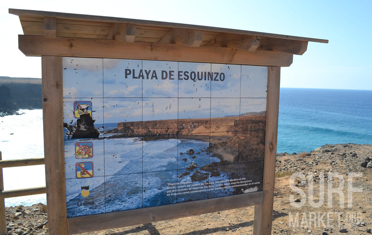 La playa de Esquinzo se ubica en la desembocadura del barranco de Esquinzo, pertenece al municipio de Oliva entre las localidades de Cotillo y Tindaya. Se encuentra un poco alejada del pueblo de El Cotillo y es complicado encontrarla porque no se ve desde el coche, pero suele haber coches aparcados cerca del acantilado en la parte norte, para llegar siempre es mejor hacerlo en un todoterreno, a pie o en bici por la ruta PR FV-1 de la costa.