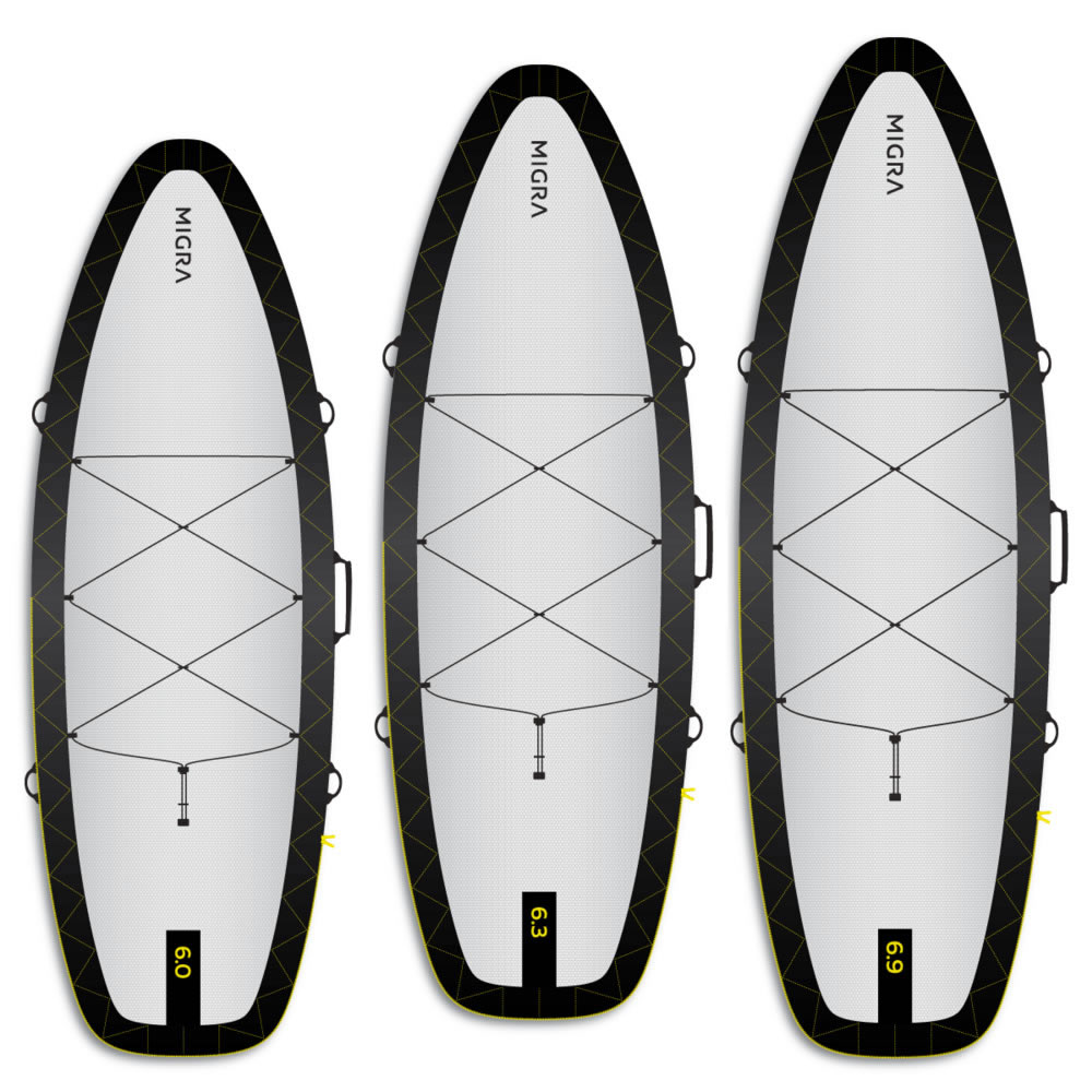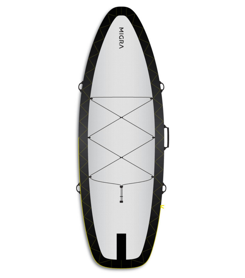 MIGRA SURF es una marca independiente dedicada al desarrollo y fabricación de fundas para tablas de surf funcionales, sostenibles y duraderas. Su equipo formado por amantes del océano con una fuerte pasión por el surf, las artes y la aventura al aire libre aporta innovaciones nunca vistas en el mundo de las bolsas de surf.  Todas las fundas MIGRA están fabricadas100% con tejido reciclado a partir de botellas de PET postconsumo.