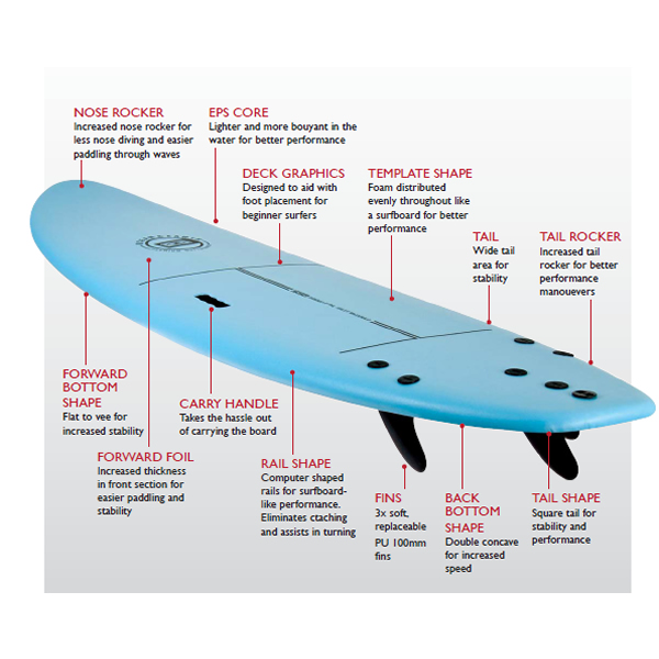 Ocean&Earth presenta su modelo de tabla Softboard de espuma para las escuelas de surf. Una softboard de gran resistencia y durabilidad recomendado para principiantes y para los que quieran aprender a surfear en shortboard pero evitando el peligro de las tablas de fibra y epoxy en sus primeros baños. Es una tabla de gran calidad avalada por Ocean&Earth.