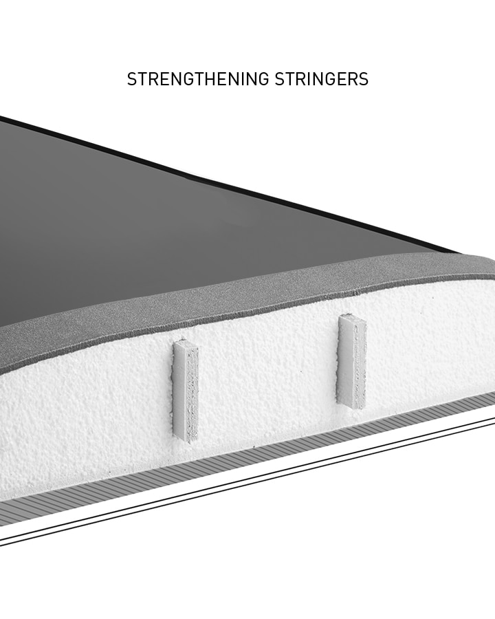 • Fabricada con espuma EPS de gran calidad. Incorpora 3 almas de madera 'stringer' en su interior.