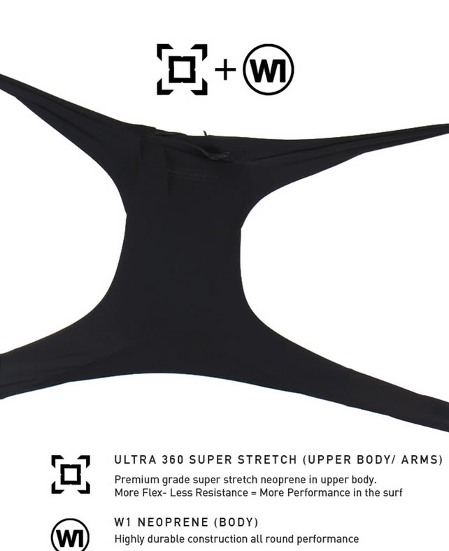 • UPPER BODY : Ultra 360 Super Stretch Neoprene.