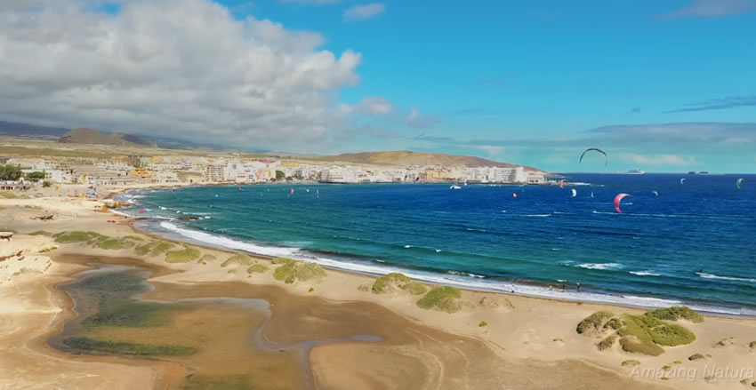 El Médano es una playa situada en el sur de Tenerife y es uno de los destinos preferidos por los amantes del windsurf y kitesurf. Es una extensa playa de arena que se caracteriza por la presencia de fuertes vientos alisios y olas de tamaño medio. Estas condiciones pueden ser un tanto complicadas para los surfistas que buscan olas con pared para maniobrar, pero son una buena alternativa para los surfistas principiantes que buscan aprender a ponerse de pie en una espuma. Esto no significa que los surfistas intermedios y avanzados deban descartar el Médano por completo, ya que también tiene sus días con vientos offshore y olas de buen tamaño, solo hay que estar atentos.