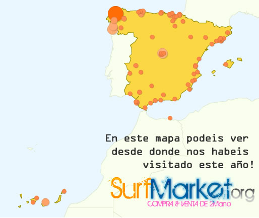 Este año 2010 ha visto el nacimiento de nuestra web y gracias a vuestras visitas desde el pasado 11 de Noviembre, más de 3.950 visitas, han hecho posible que estemos decididos a continuar desarrollando este proyecto para facilitar la compra y venta de material deportivo de surf, bodyboard, longboard, neoprenos y mucho más.
