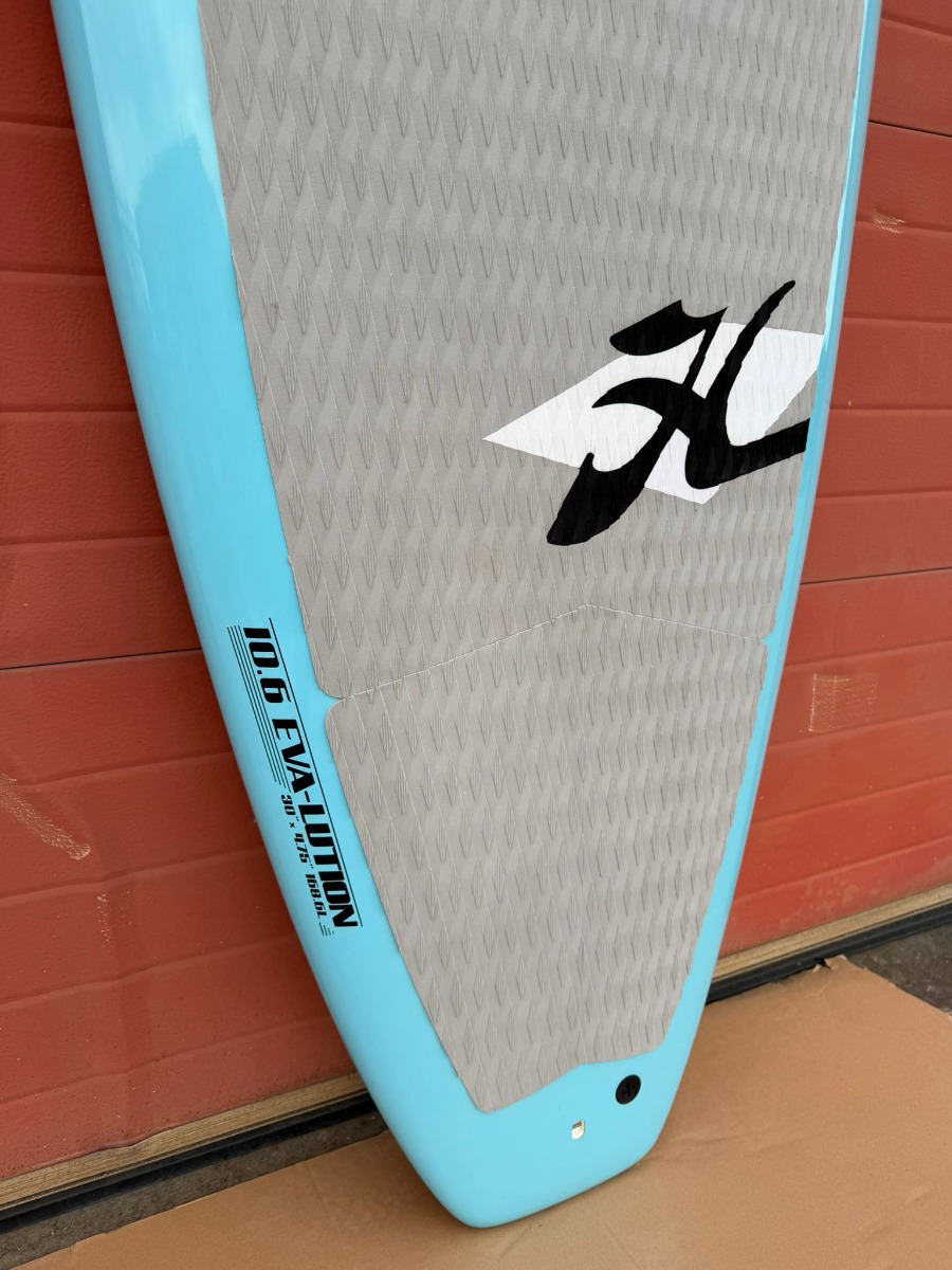 Fabricada mediante el proceso HCX de Hobie, la EVA-Lution combina ligereza, rigidez y durabilidad, resultando en una tabla que funciona bien tanto en aguas tranquilas como con ligero oleaje. El EVA deck pad no solo aporta comodidad, sino que también mejora el grip bajo los pies, lo que la hace ideal para sesiones prolongadas sin fatiga prematura.