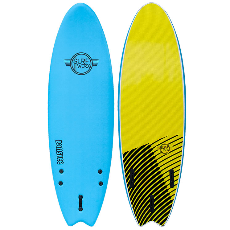 - The Surfworx Banshee Hybrid soft surfboard comes with fins and a leash and would make the perfect first surfboard for kids keen to advance their surfing skills.
