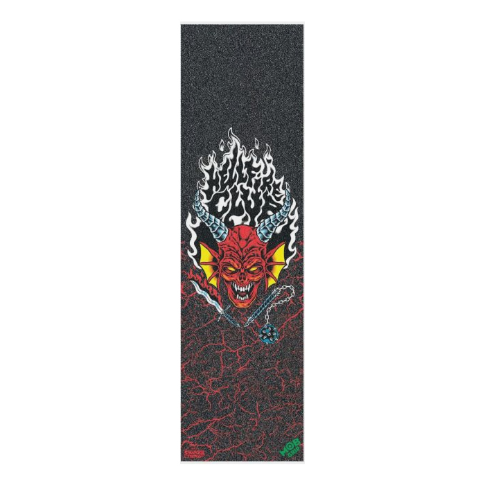 - La alianza entre Mob Grip y Stranger Things da lugar a una pieza imprescindible para tu setup. La Hellfire Club Griptape 9x33” lleva el icónico emblema infernal del club más legendario de Hawkins sobre una superficie negra con acabado texturizado profesional.