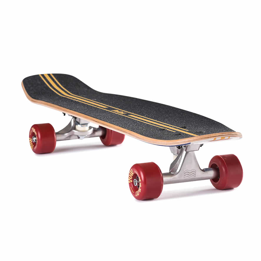 • Montado con nuestro nuevo eje patentado Legasee en 129 mm, que cuenta con un mayor radio de giro que los camiones de patín estándar, lo que le permite bombear y tallar casi como si estuviera montando nuestro sistema surfskate, mientras que le permite empujar con facilidad.