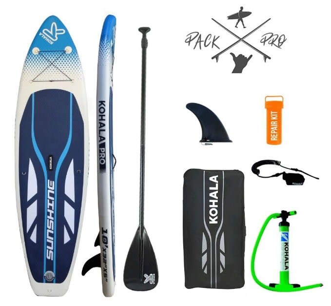- Incluye Pack: 1 iSUP, 1 bomba de hinchado con manómetro, 1 Leash, 1 bolsa de transporte, 3 quillas (2+1) y 1 kit de reparaciones.