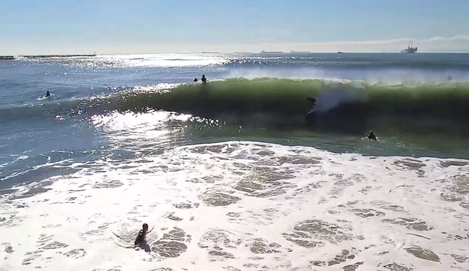 Con una gran marejada del WNW, North Side se convierte en una ola muy exigente con "pier bowls" pronunciados que se reflejan en el muelle de Anaheim hacia el sur y barren el muelle. South Side empieza a imitar a Hawai con potentes y gruesos bowls que rompen innumerables tablas cada día que bombea.